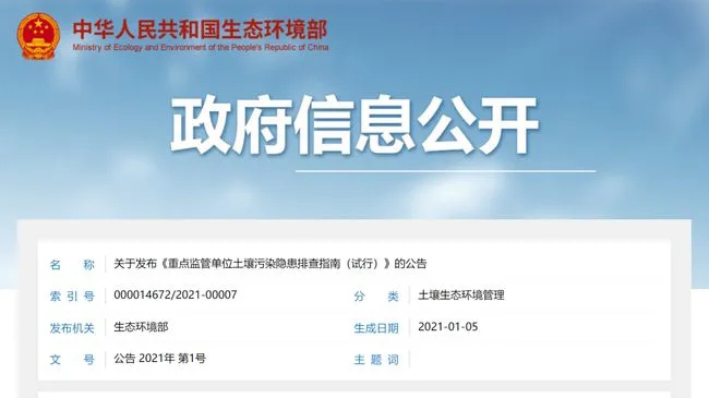 《重點監管單位土(tǔ)壤污染隐患排查指♥>☆南(nán)(試行(xíng))》正式發布實施