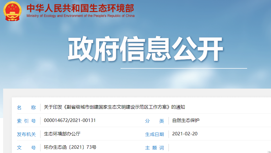 關于印發《副省級城(chéng)市(shì)創建國(guó)家↑φπ✔(jiā)生(shēng)态文(wén)明(míng)ε₩建設示範區(qū)工(gōng)作(zuò)方案<≥∑←》的(de)通(tōng)知(zhī)