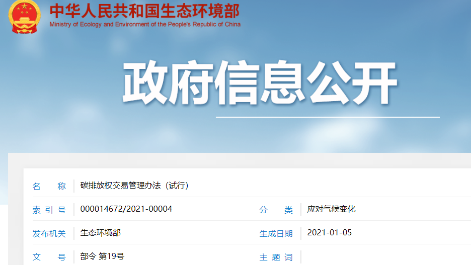 《碳排放(fàng)權交易管理(lǐ)辦法(試行(xíng))》